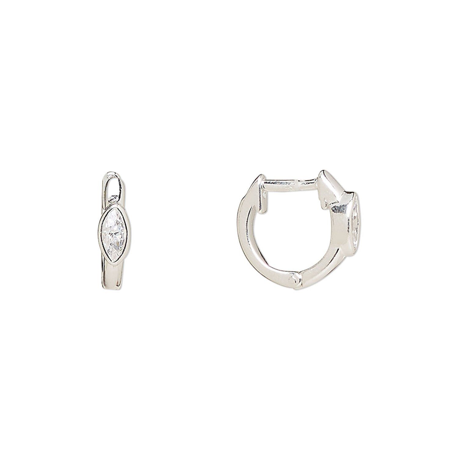 Earring, Create Compliments®, sterling silver and cubic zirconia, clear, 12x11mm round hoop with endless-loop closure. Sold per pair.