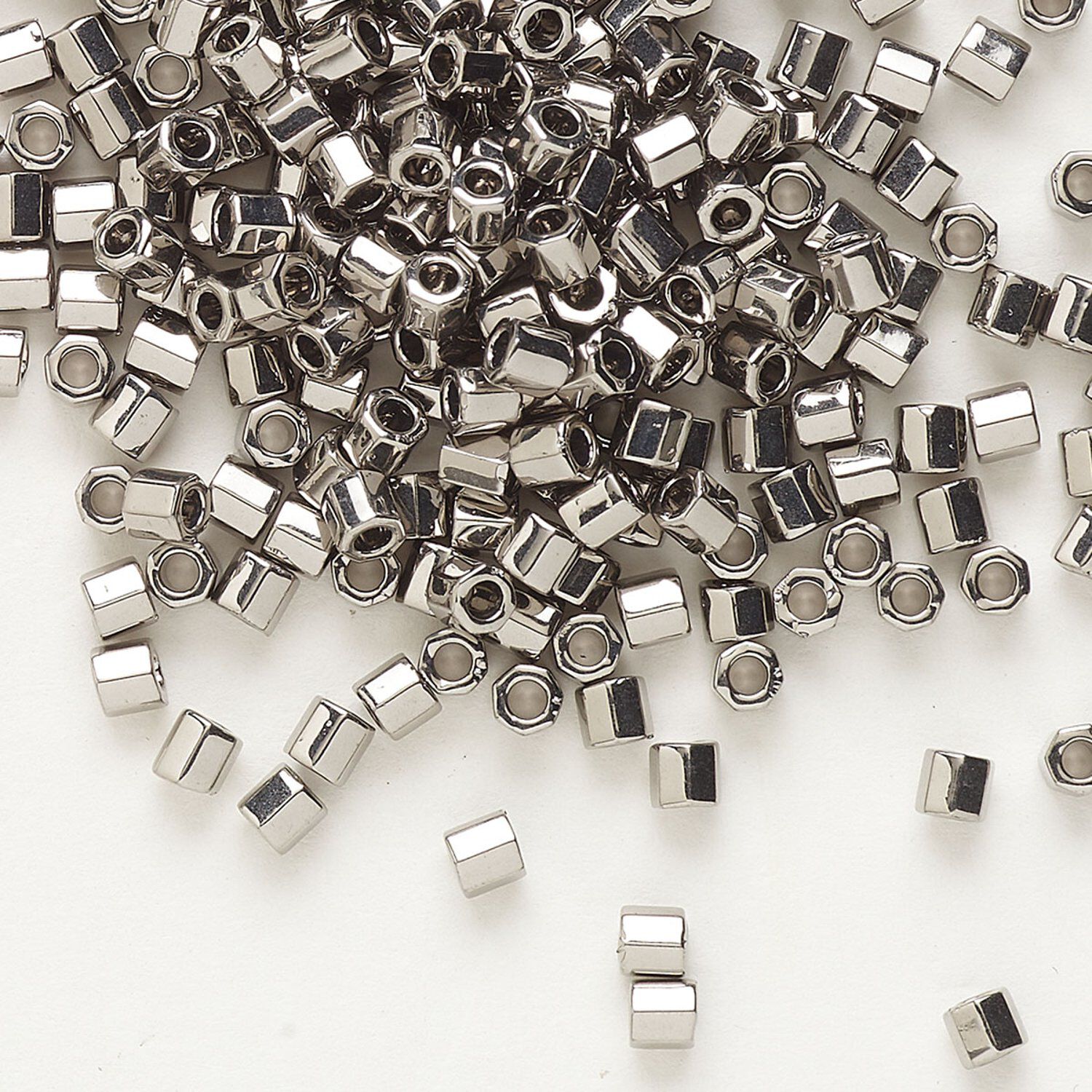 Seed bead, Delica®, glass, pkg/250g, #8 cut, opaque nickel-plated (DBLC-0021).