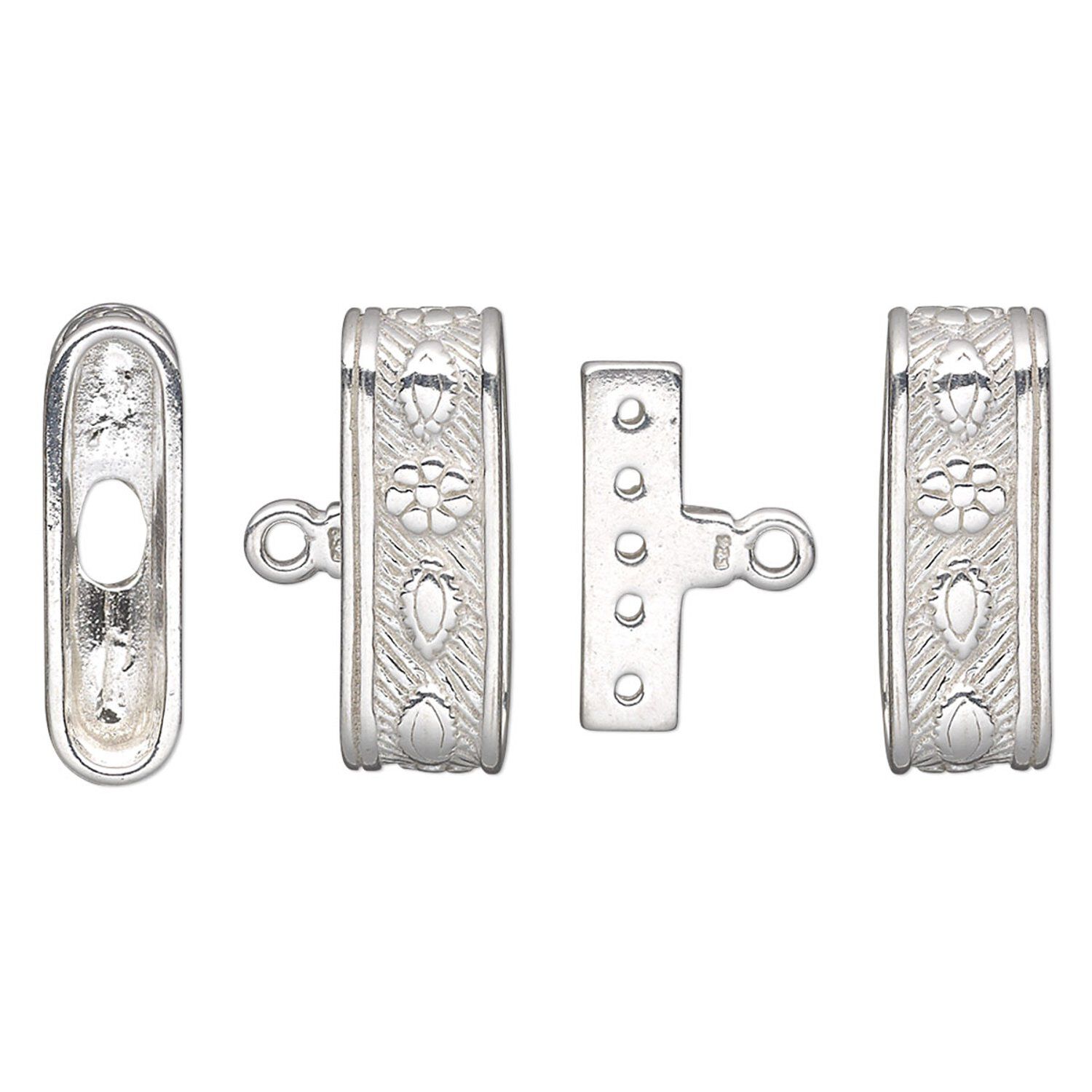 End bar, sterling silver, 19x5.5mm 5-strand double-sided fancy oval textured cap with 15x7mm inside bar, 17x3.5mm hole. Sold individually.