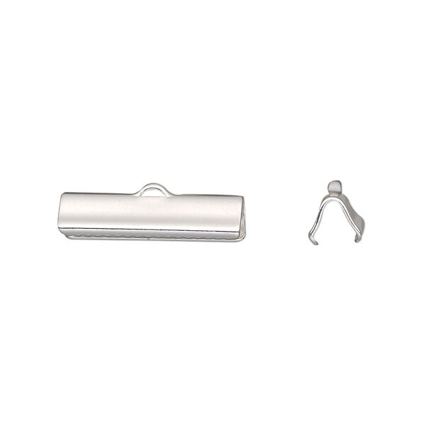 Sterling silver ribbon crimp end has an easy-to-use V-shaped slot--just press together with flat nose pliers. Internal teeth hold ribbon securely and hide frayed ribbon edges. Top loop is used for attaching jump ring and clasp, brooch or other findings. Ribbon crimp end has an anti-tarnish coating.
