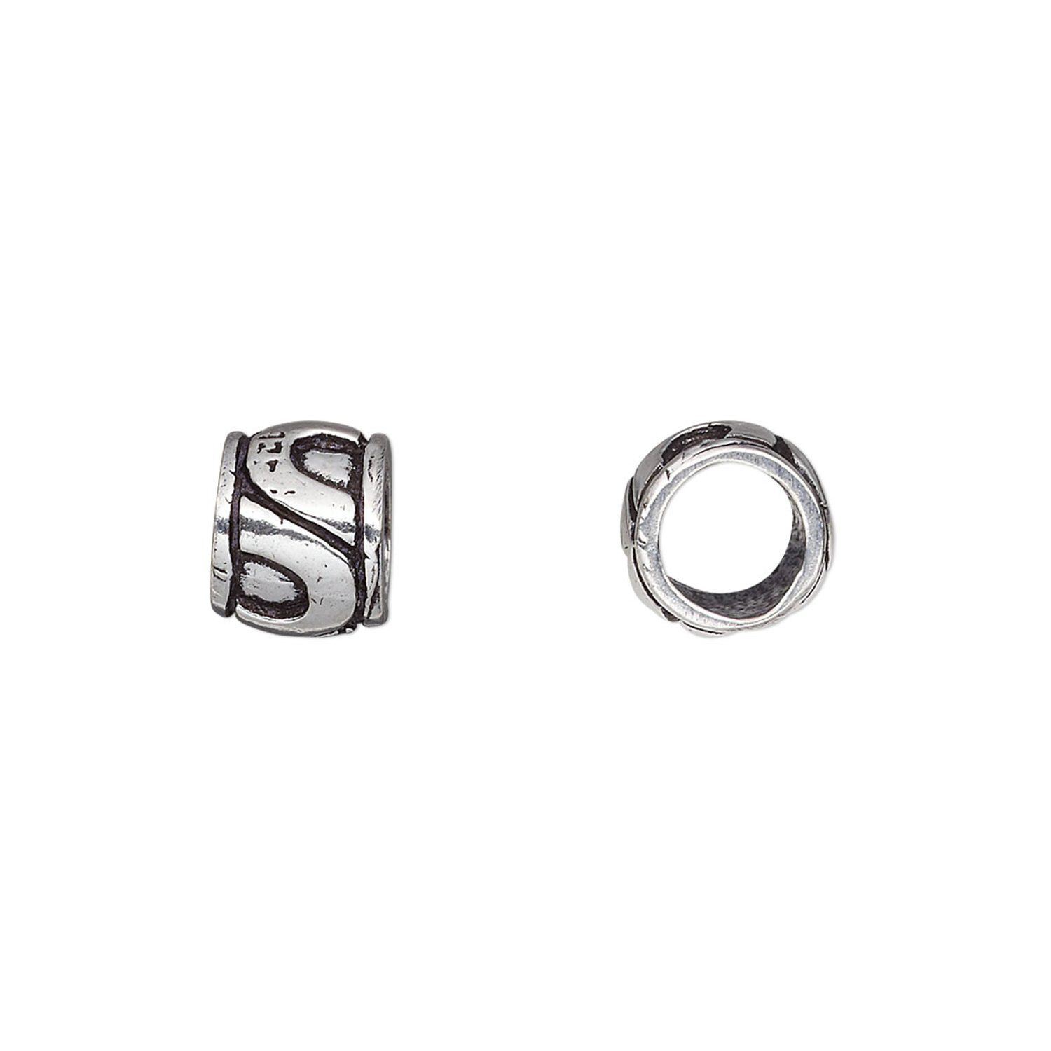 Bead, antique silver-plated brass, 9x7mm barrel with "U"-shape design, 6mm hole. Sold per pkg of 6.