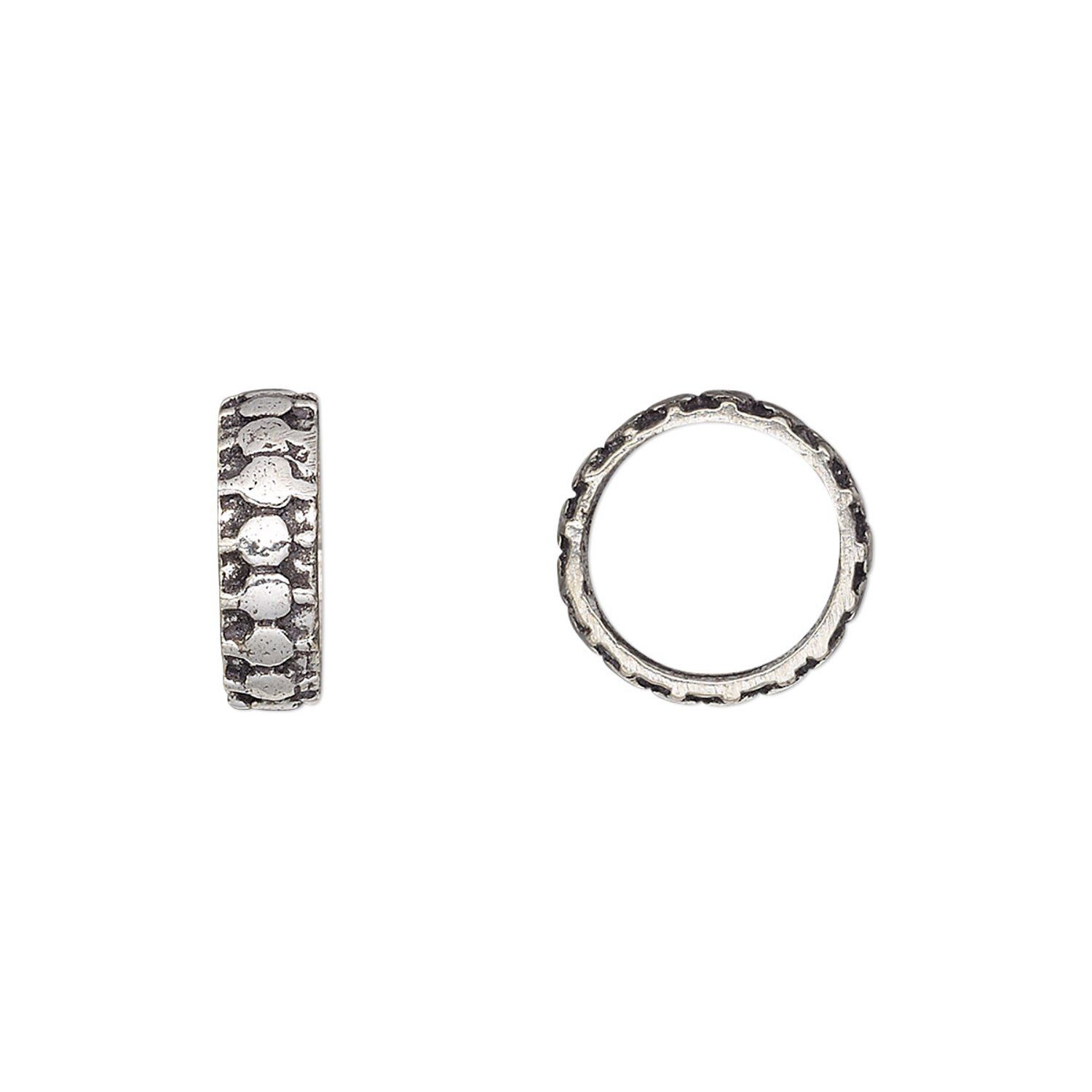 Silver-plated lightweight brass beads feature patterns in dots and geometric shapes. Antique silver-plating brings out the intricate surface patterns for added visual impact.