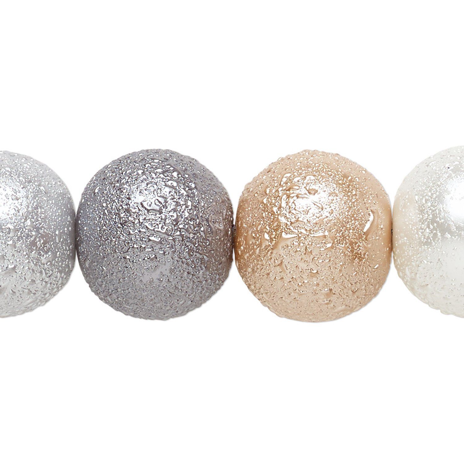 The textured surface of each glass pearl adds dimension and visual interest in attractive colors that offer jewelry makers stellar design possibilities. Colors can include white, medium pink, dark blue and more. Size and shape may vary slightly and color may vary from dye lot to dye lot. Some strands may have slightly irregular shapes, sizes or minor surface blemishes.
