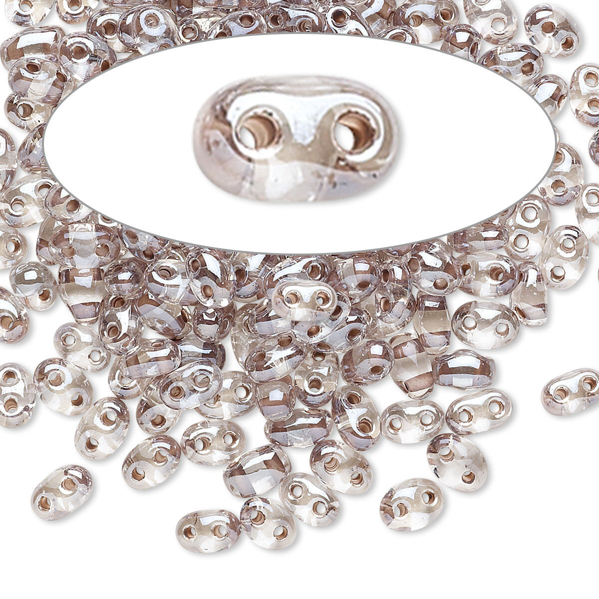 Seed bead, Preciosa Twin™ Czech glass, pkg/50g, 5x2.5mm oval, transparent mocha terra color-lined clear, (38618).