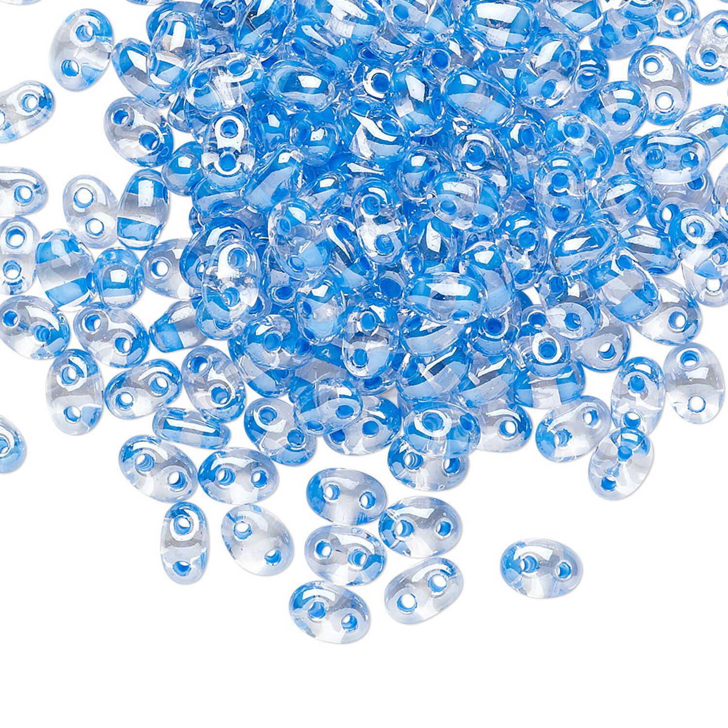 Seed bead, Preciosa Twin™ Czech glass, pkg/50g, 5x2.5mm oval, transparent sea blue terra color-lined clear, (38636).