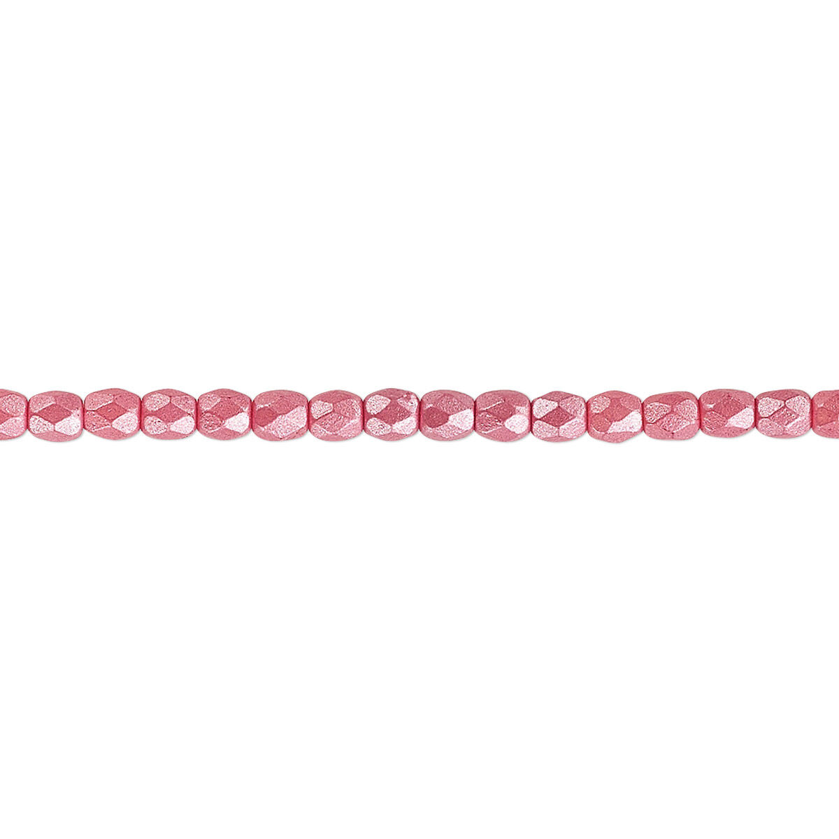 Czech fire-polished glass 1pkg1, faceted round bead dipped décor opaque pearlescent dusty rose 1 mass 3mm