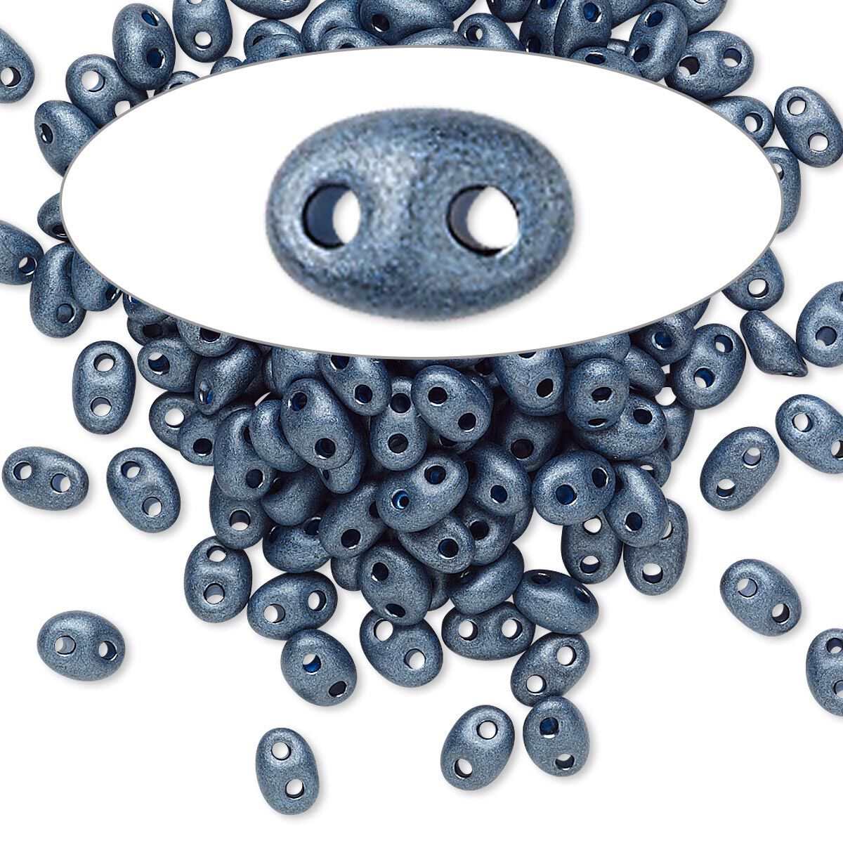 Seed bead, Preciosa Twin™ Czech glass, pkg/10g, 5x2.5mm oval, opaque dark slate terra pearl black, (28936).