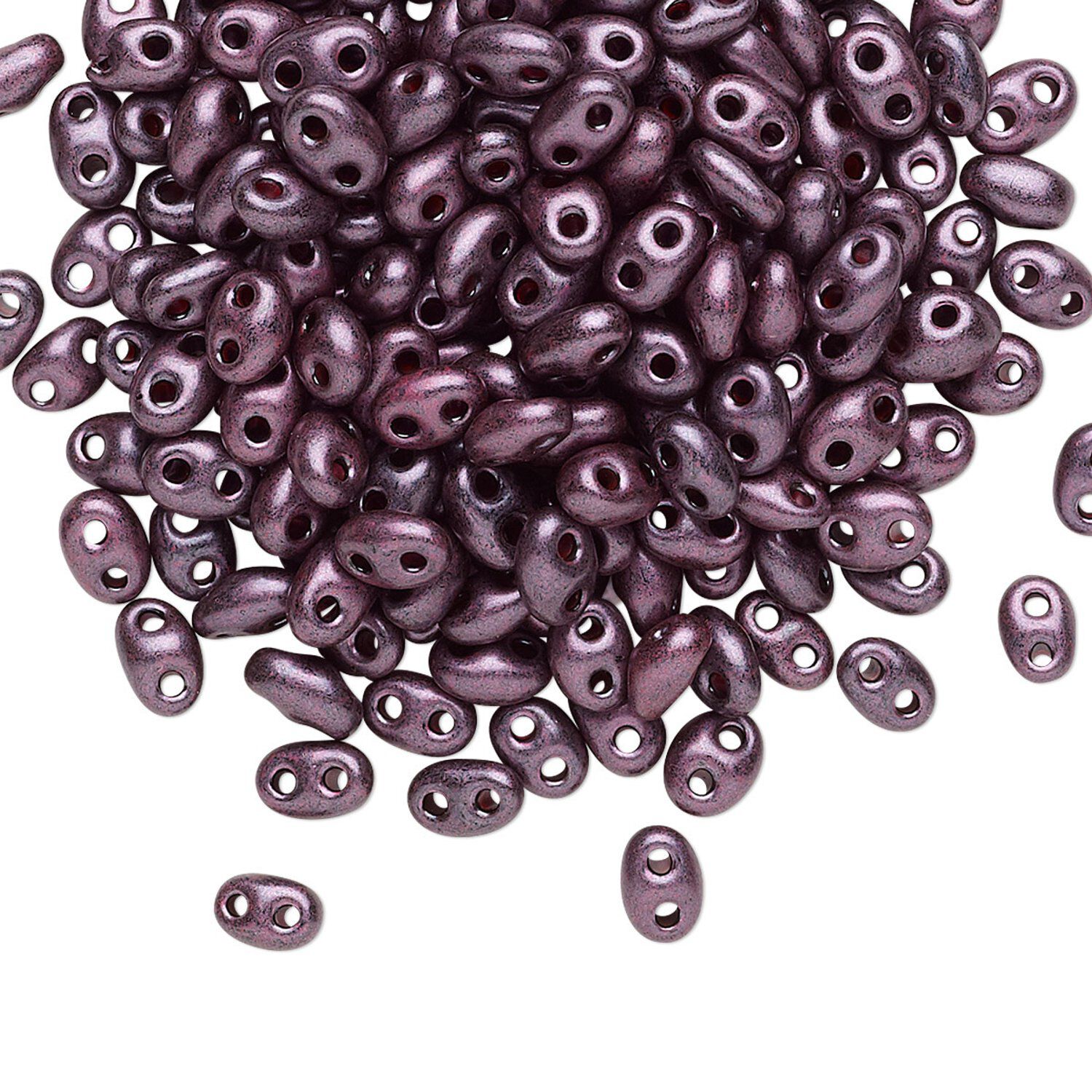 Seed bead, Preciosa Twin™ Czech glass, pkg/50g, 5x2.5mm oval, opaque dark purple terra pearl black, (28998).