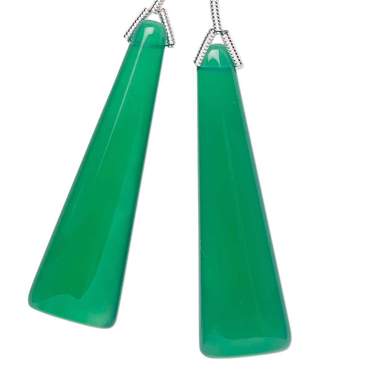 Green onyx 1pkg2, hand-cut top-drilled triangle bead 40x40mm