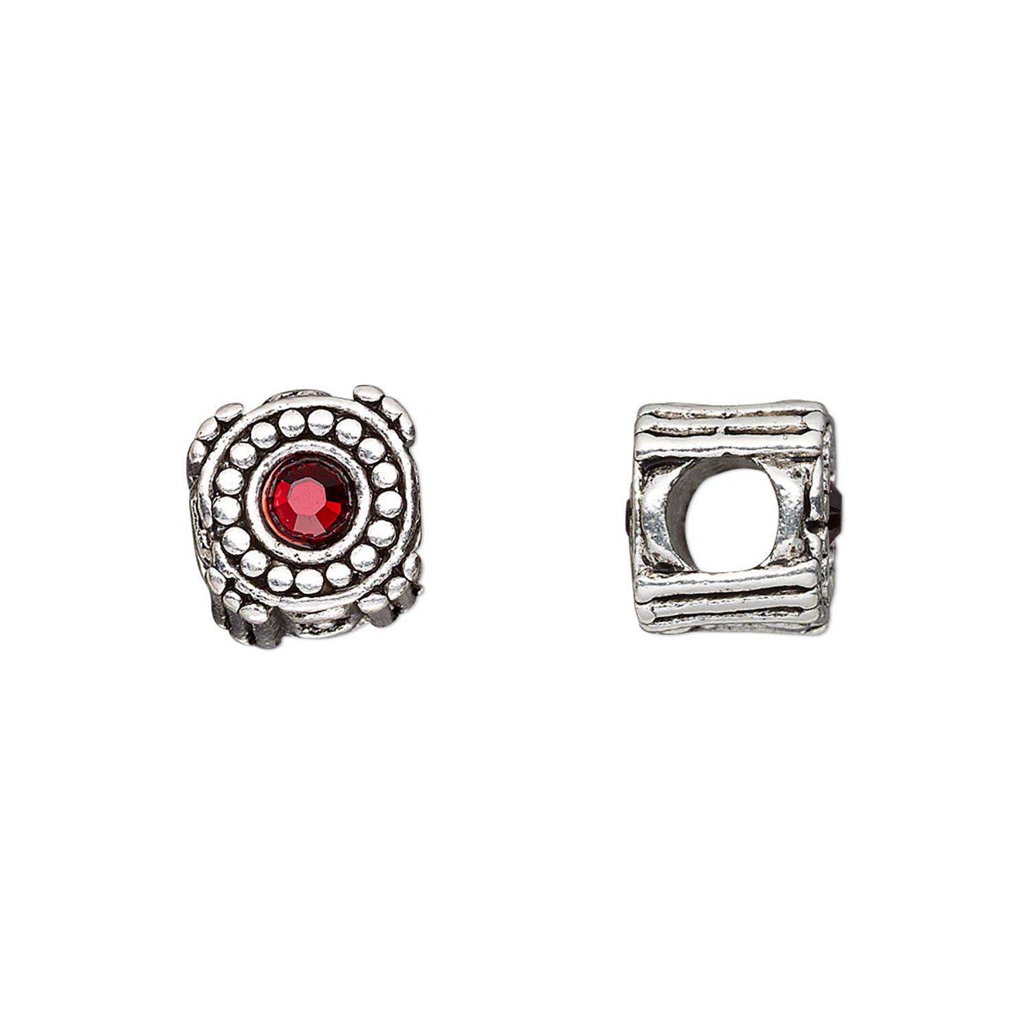 Create personalized beauty with Dione® large-hole beads. This ornate silver-plated pewter (tin-based alloy) bead features sparkling crystal rhinestones in a vibrant January birthstone color. With a large hole, this three-dimensional large-hole bead is ideal for stringing onto thick cord, multiple wires and caprice or Dione® Easy-On Chain.