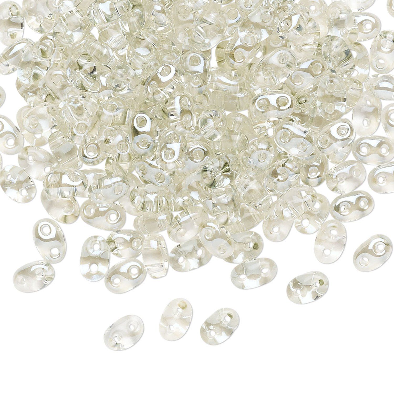 Seed bead, Preciosa Twin™ Czech glass, pkg/250g, 5x2.5mm oval, transparent viridian clear, (20203).