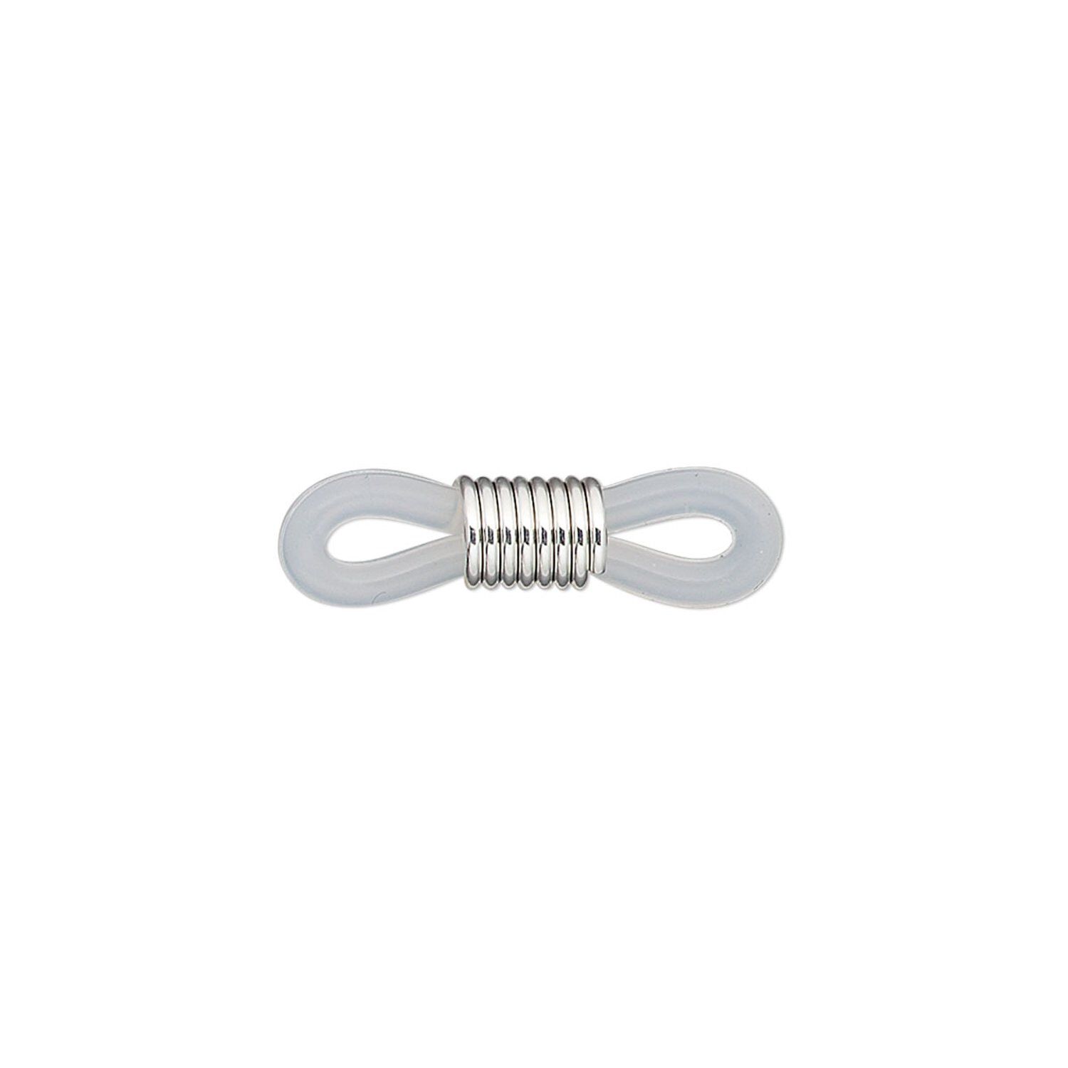 Eyeglass holder, rubber and silver-finished brass, clear, 20x5mm-26x5mm with adjustable coil. Sold per pkg of 100.