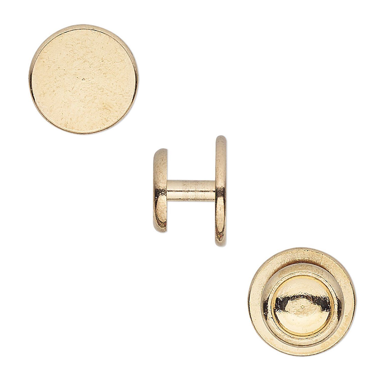 Cuff link, gold-finished brass, 12x8mm with 12mm round pad. Sold per pkg of 2 pairs.