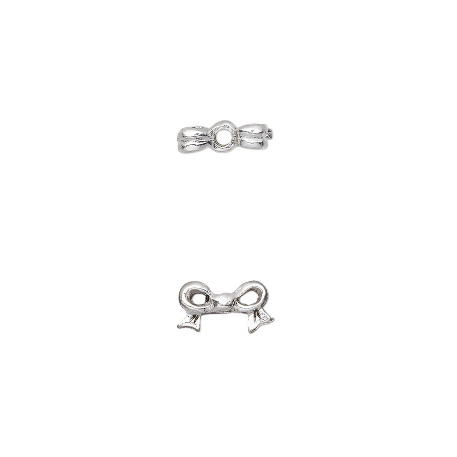 Bead, silver-plated pewter (tin-based alloy), 9x5mm bow, fits 4mm cube bead. Sold per pkg of 4.