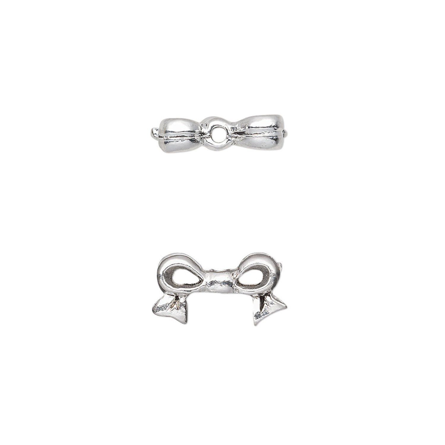Bead, silver-plated pewter (tin-based alloy), 13x7mm bow, fits 6mm cube bead. Sold per pkg of 4.