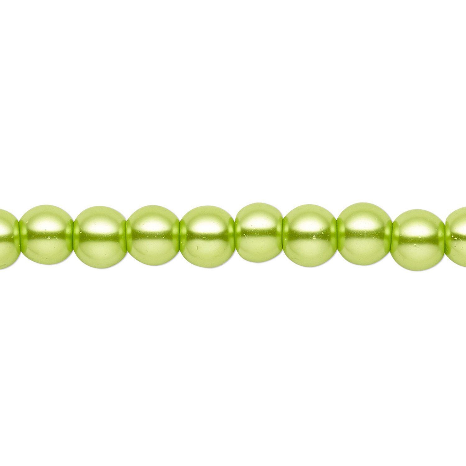 Bead, crystal pearl, lime green, 5-6mm round. Sold per pkg of (2) 15-1/2" to 16" strands, approximately 130 beads.