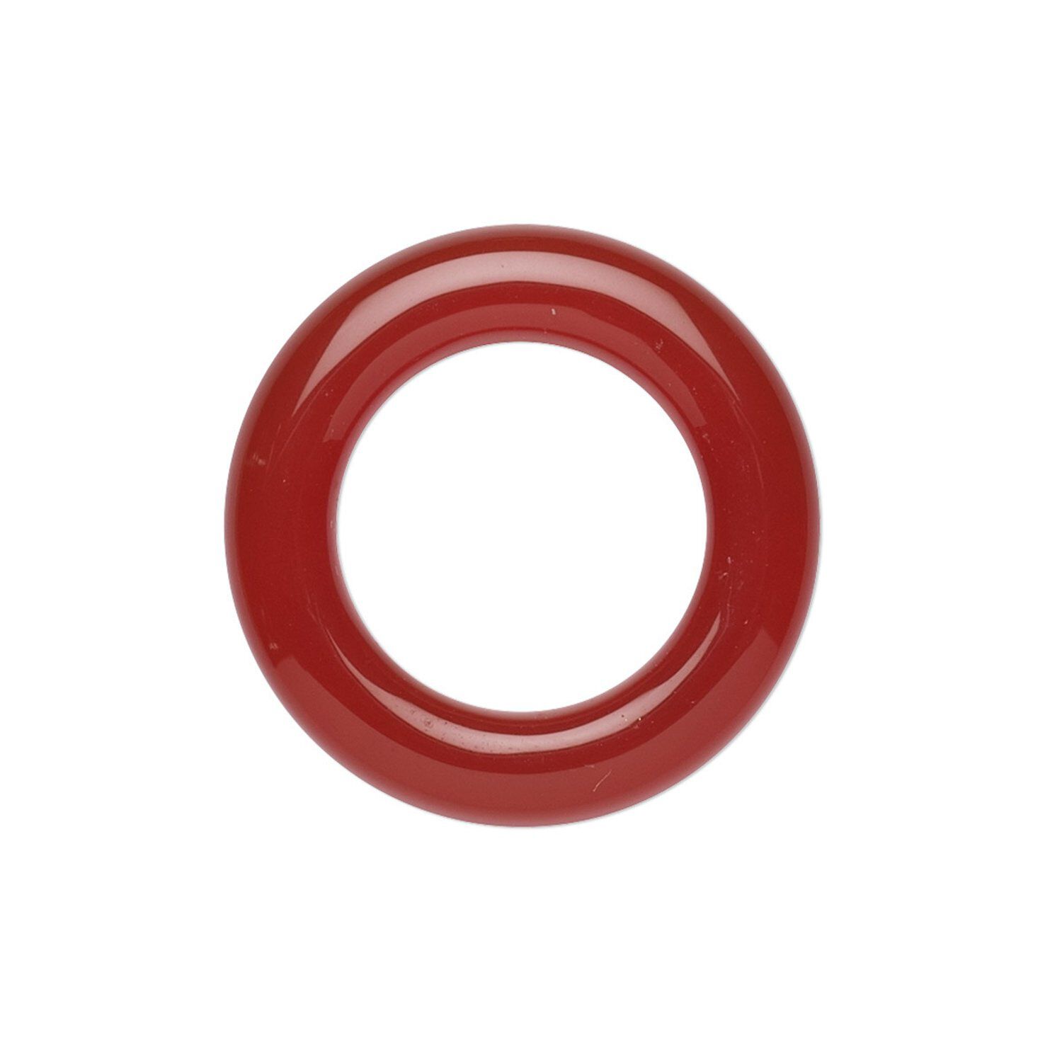 Highly polished red agate ring components are a versatile addition to jewelry since they can be used as a connector, link, lariat clasp and more. Each component is machine made and polished for consistent size, shape and polish. Agate is a banded chalcedony in red shades ranging from translucent to opaque. Red agate obtains its rich, red-orange color from an age-old process of dyeing and heating.