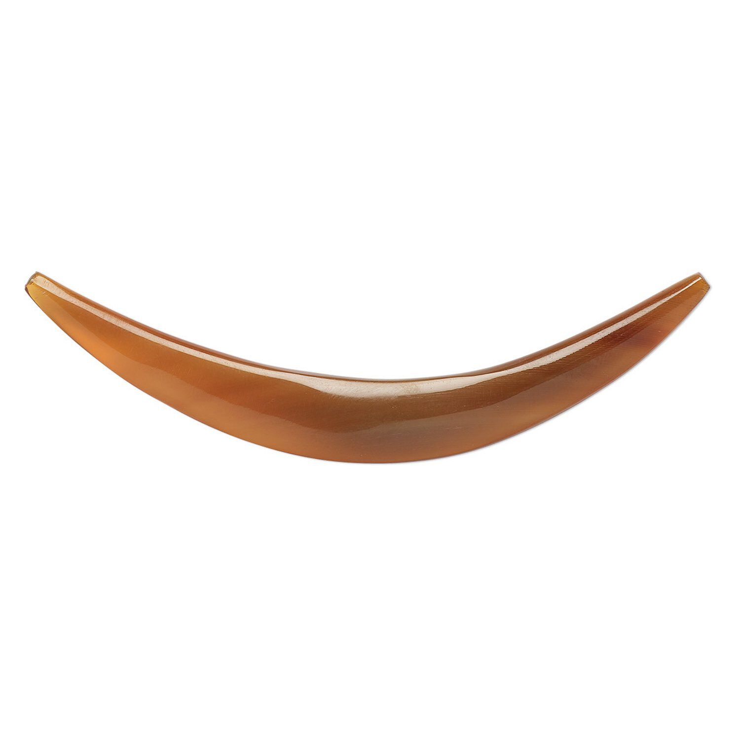 Component, horn (dyed), golden, 9-10.5mm wide, 3 x 3/4 inch to 3-1/4 x 1 inch undrilled flat curve with tapered 4-5mm ends. Sold individually.
