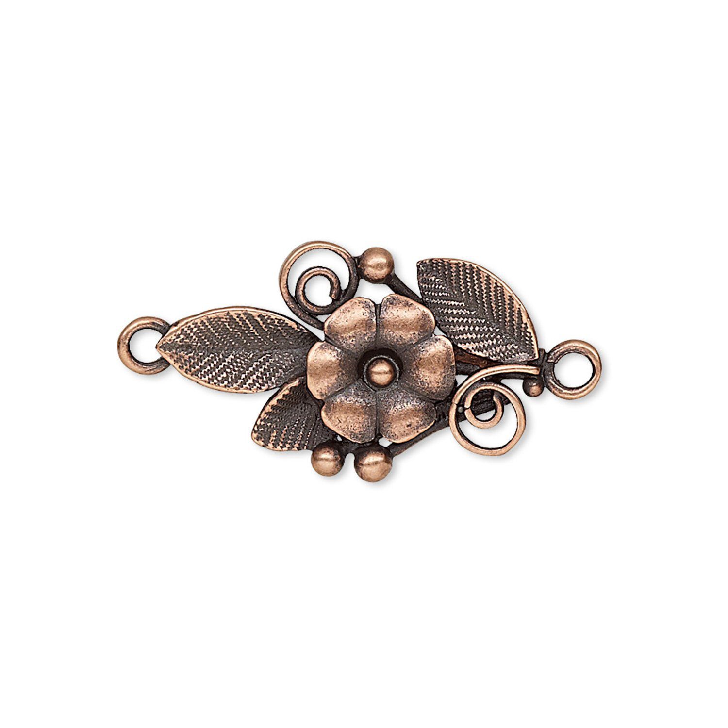Brass link with flower and leaves easily connects to chain, wire and other beading components. Link features a long-lasting antique plating.