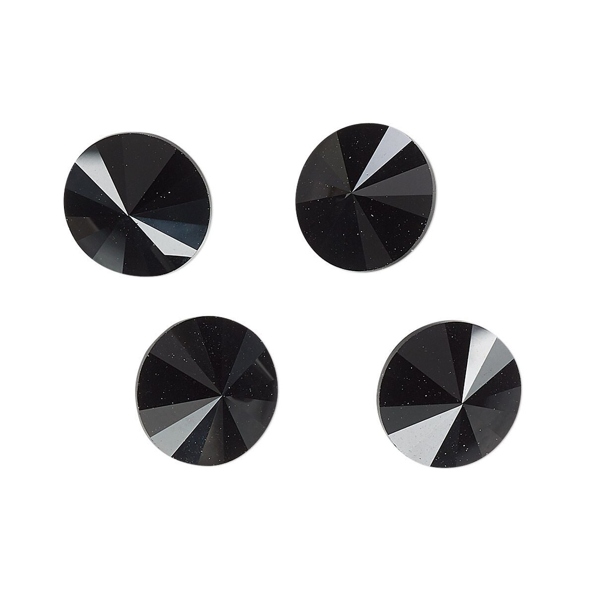 Chaton, jet, 12mm faceted rivoli. Sold per pkg of 4.