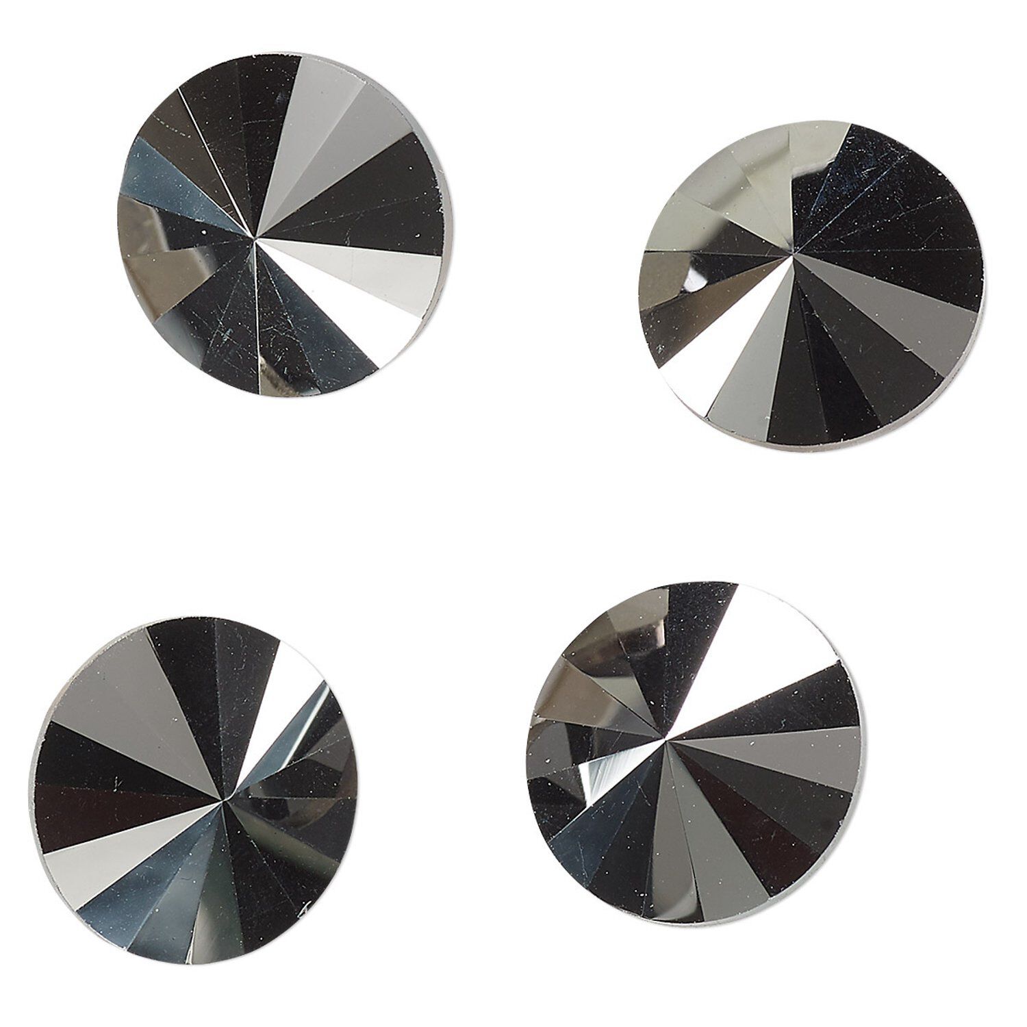 Chaton, hematite, foil back, 16mm faceted rivoli. Sold per pkg of 4.
