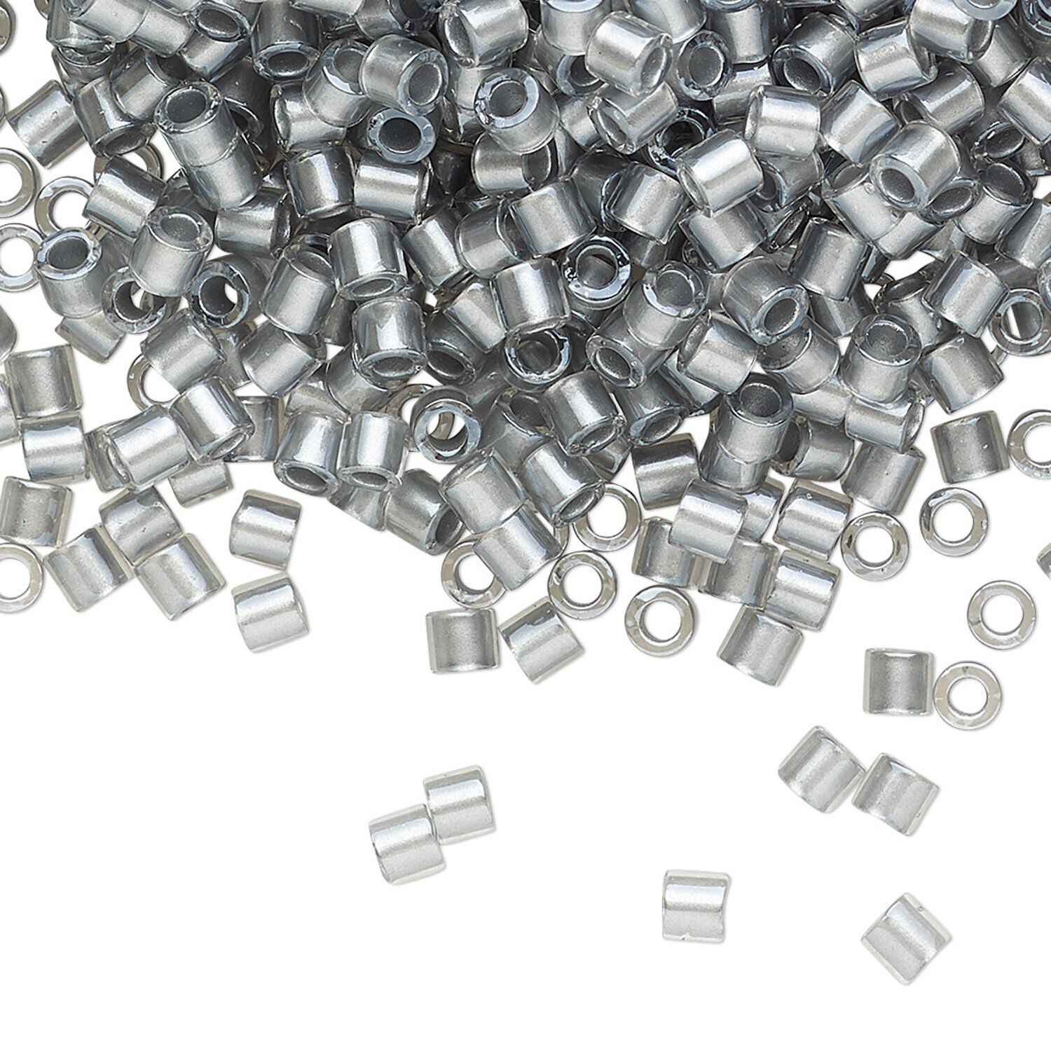 Seed bead, Delica®, glass, pkg/250g, #8 round, translucent silver grey-lined luster crystal clear (DBL-0271).