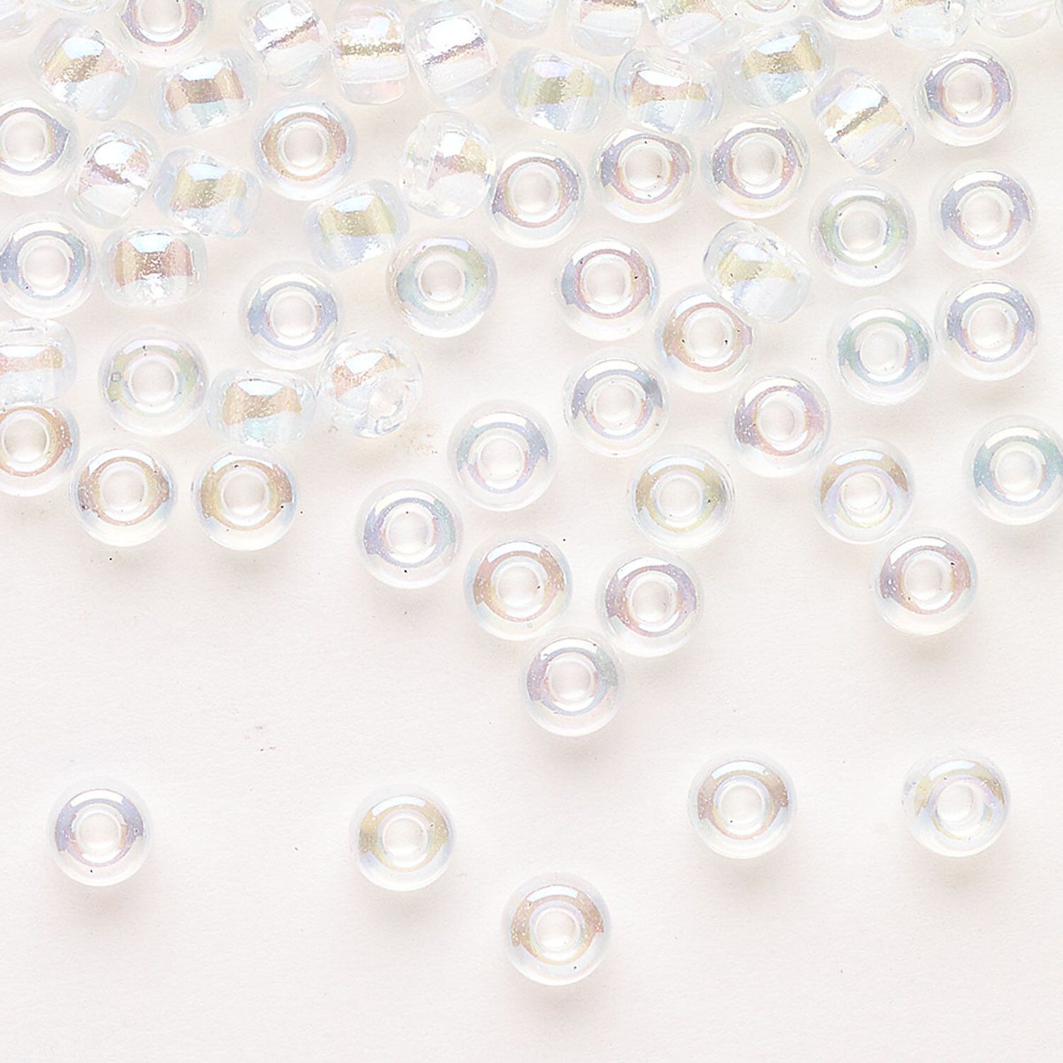 Seed bead, Miyuki, glass, pkg/250g, #6 rocaille, translucent rainbow crystal clear, (RR-250).