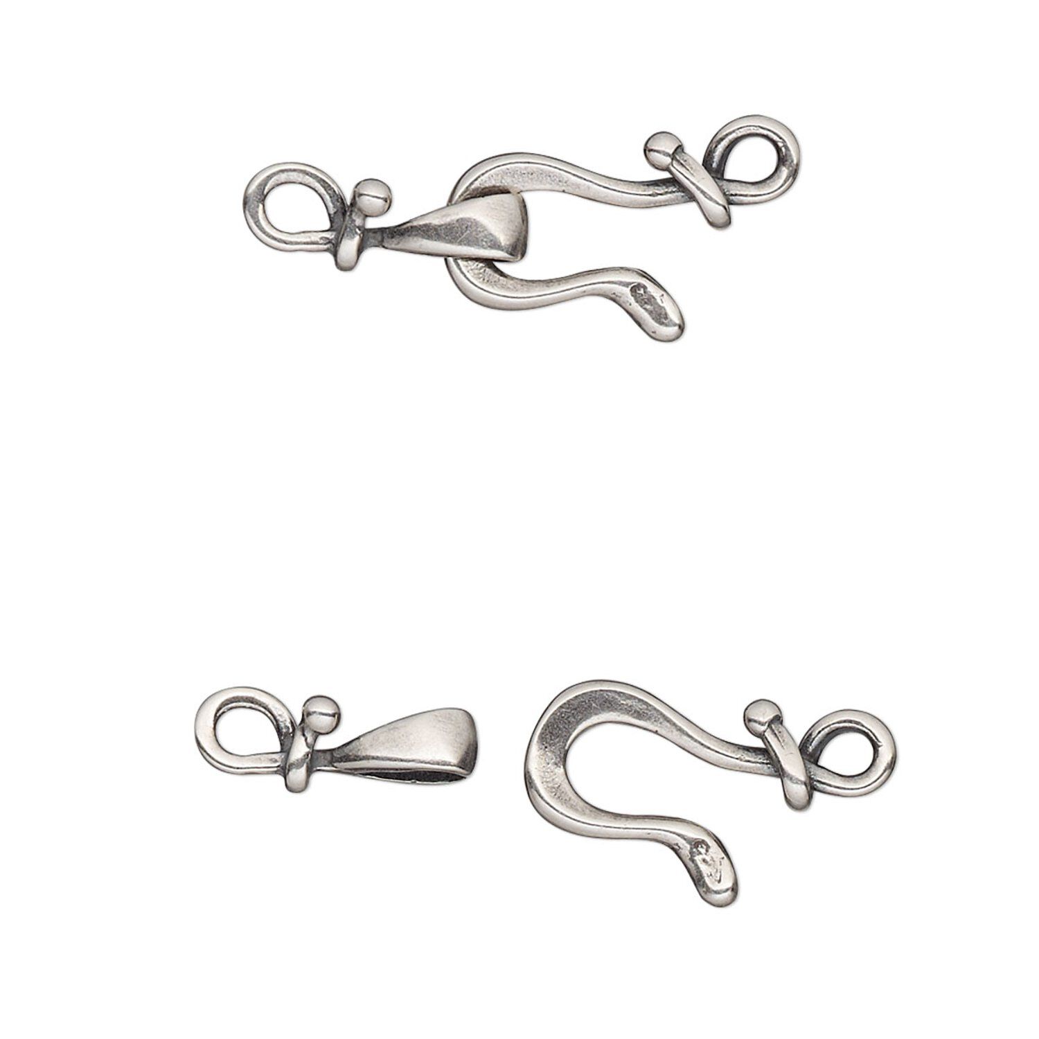 Antique silver-plated brass hook-and-eye clasp attractively connects the ends of bracelets and necklaces together.