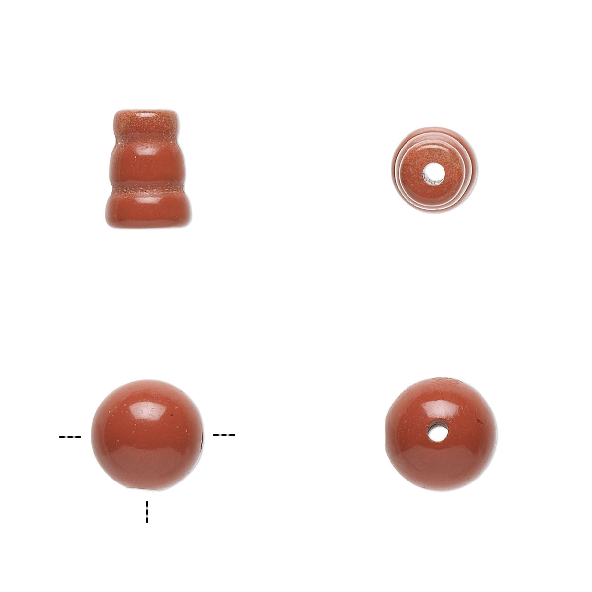 Red jasper 2pkg2, T-drilled round / cone bead natural 8mm / 8x5mm-9x6mm