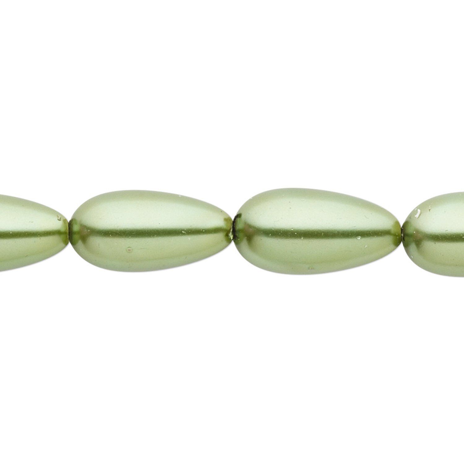 Bead, crystal pearl, medium green, 15x7mm-18x8mm teardrop. Sold per 15-1/2" to 16" strand, approximately 20 beads.