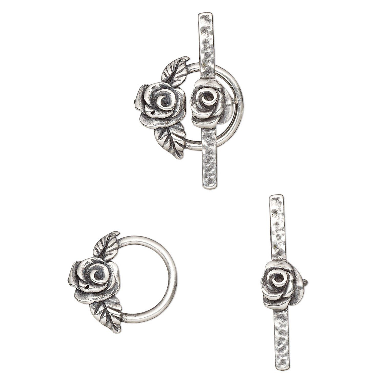 Decorative antique silver-plated brass toggle clasp can be used as the focal in a piece of jewelry or in support of an overall design.