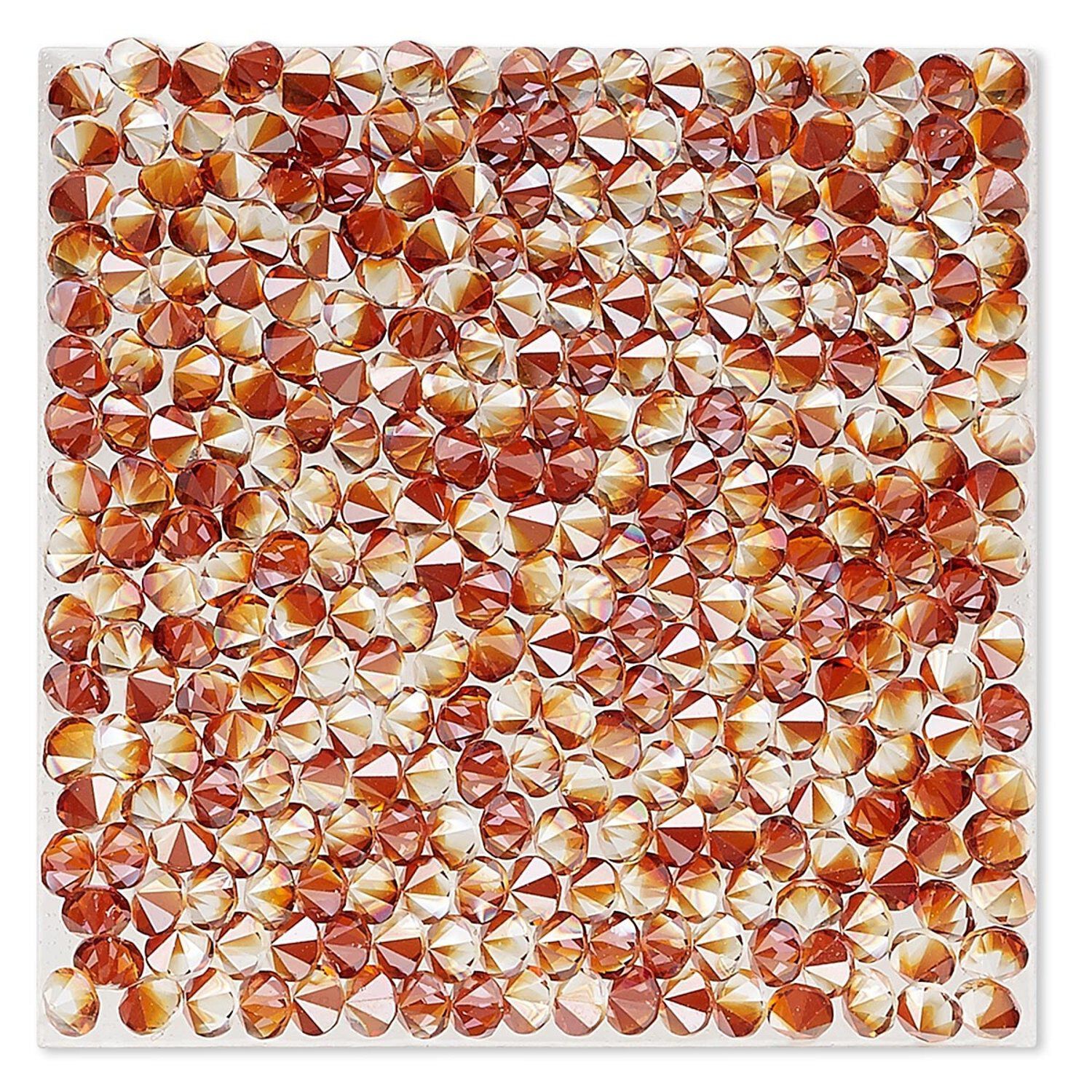 Crystal Passions® rocks are made of chatons (3499) suspended in flexible hotfix adhesive film. Adheres to leather and most fabrics with a standard heat press or non-steam iron for quick and long-wearing embellishments. Can also be applied to wood, paper or metal. Do not apply heat surface directly onto crystals without using a hotfix transfer sheet or pressing cloth--test first before applying. If crystal surface is uneven, apply heat from the back. When heat application is not an option, adhesive such as Araldite® standard 2-part epoxy can be applied. Use as is to adhere to suitable size setting or mounting. Because crystal rocks are pre-cut using a special method, additional cutting into shapes is not recommended.