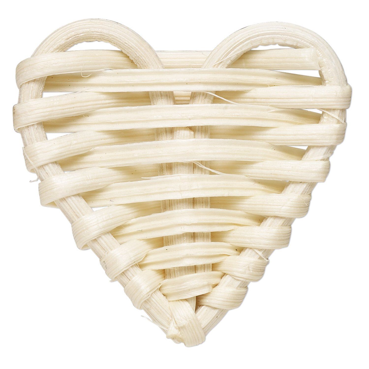 Focal, rattan wood, cream, 46x43mm heart. Sold per pkg of 2.