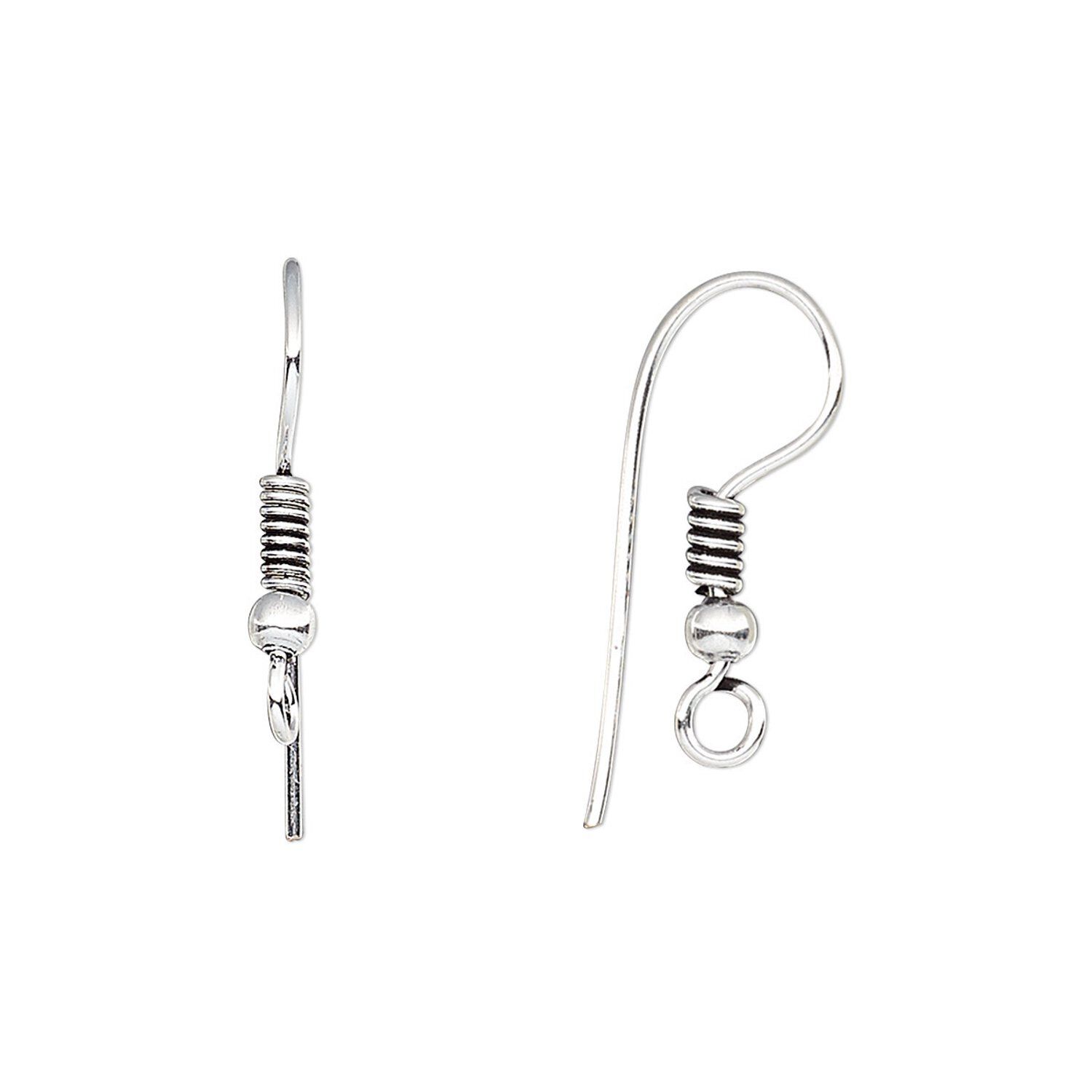Antique silver-plated copper fishhook ear wires feature a standard ball and coil design and an open loop. Sizes, shapes and colors may vary with handcrafted items.