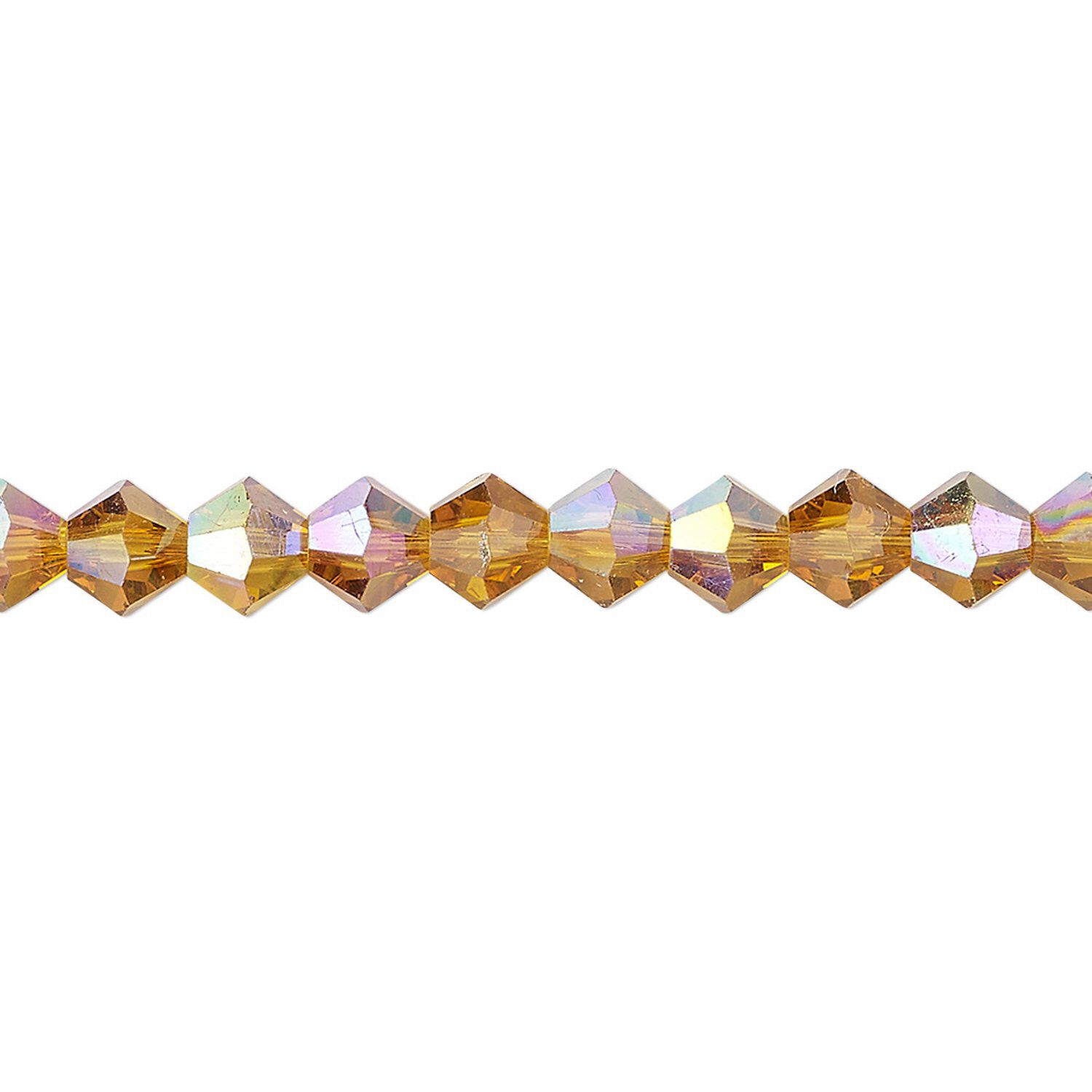 Bead 1pk transparent gold AB, Celestial Crystal® 6mm bicone 15.5-16 inch