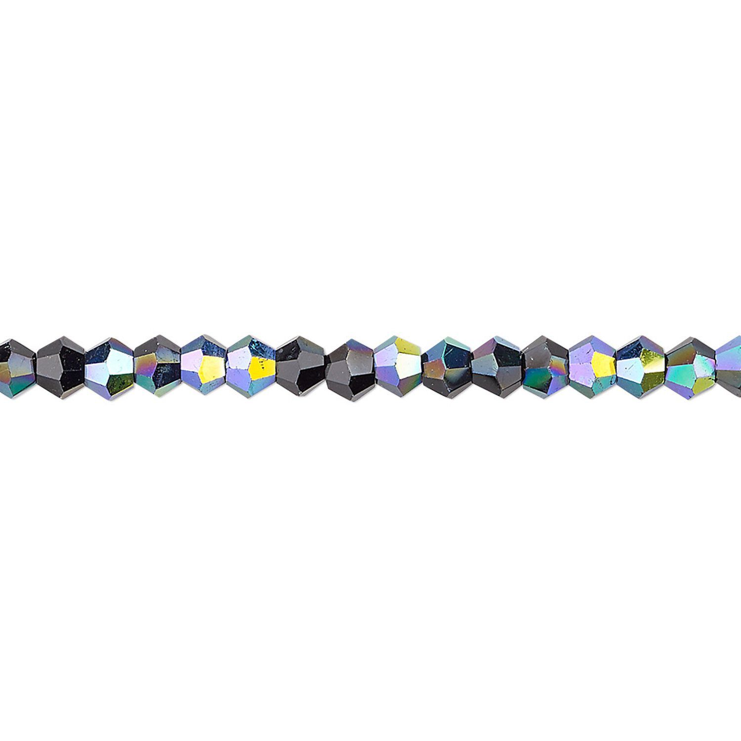 Bead 1pk opaque black AB, Celestial Crystal® 4mm bicone 15.5-16 inch