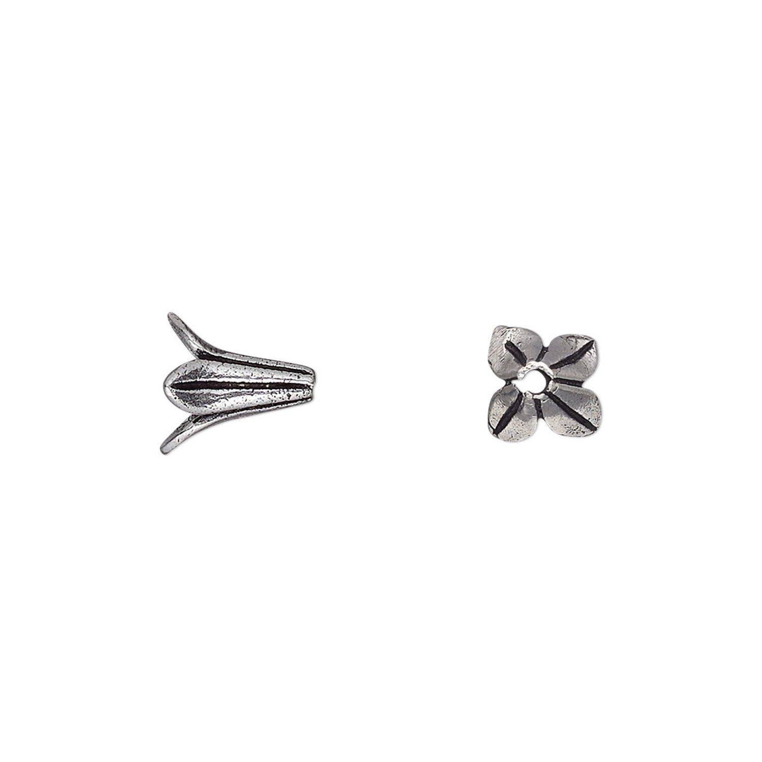 Lightweight silver-plated brass bead caps feature floral details. Antique finish brings out the intricate surface patterns for added visual impact. Sizes, shapes and colors may vary with handcrafted items.