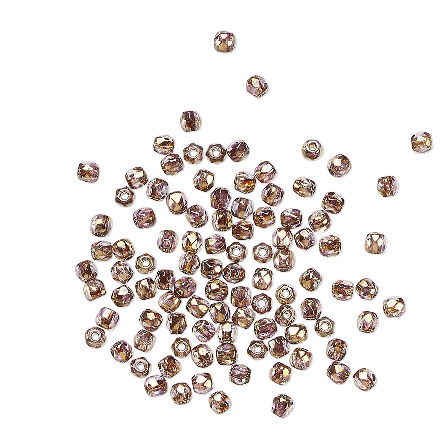 Bead 1pkg1200, Czech fire-polished glass, translucent copper luster, 2mm faceted round. 1 mass.