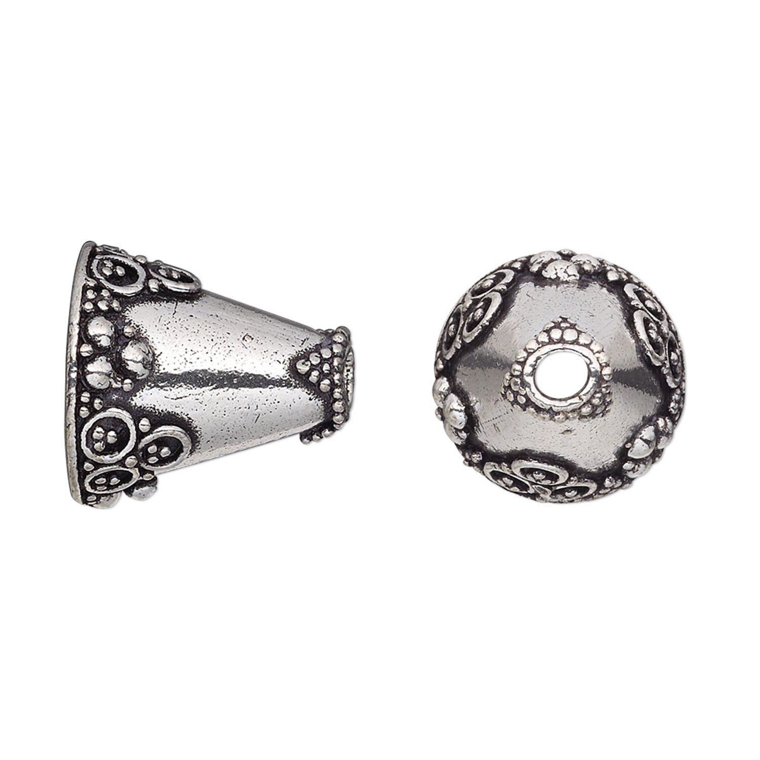 Cone, antique silver-plated brass, 16x15mm beaded with circles, 11.5mm hole. Sold per pkg of 2.