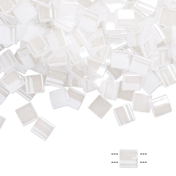 Seed bead, TILA®, glass, pkg/40g, 5mm full tila square, opaque ceylon pearl white, (TL-511).