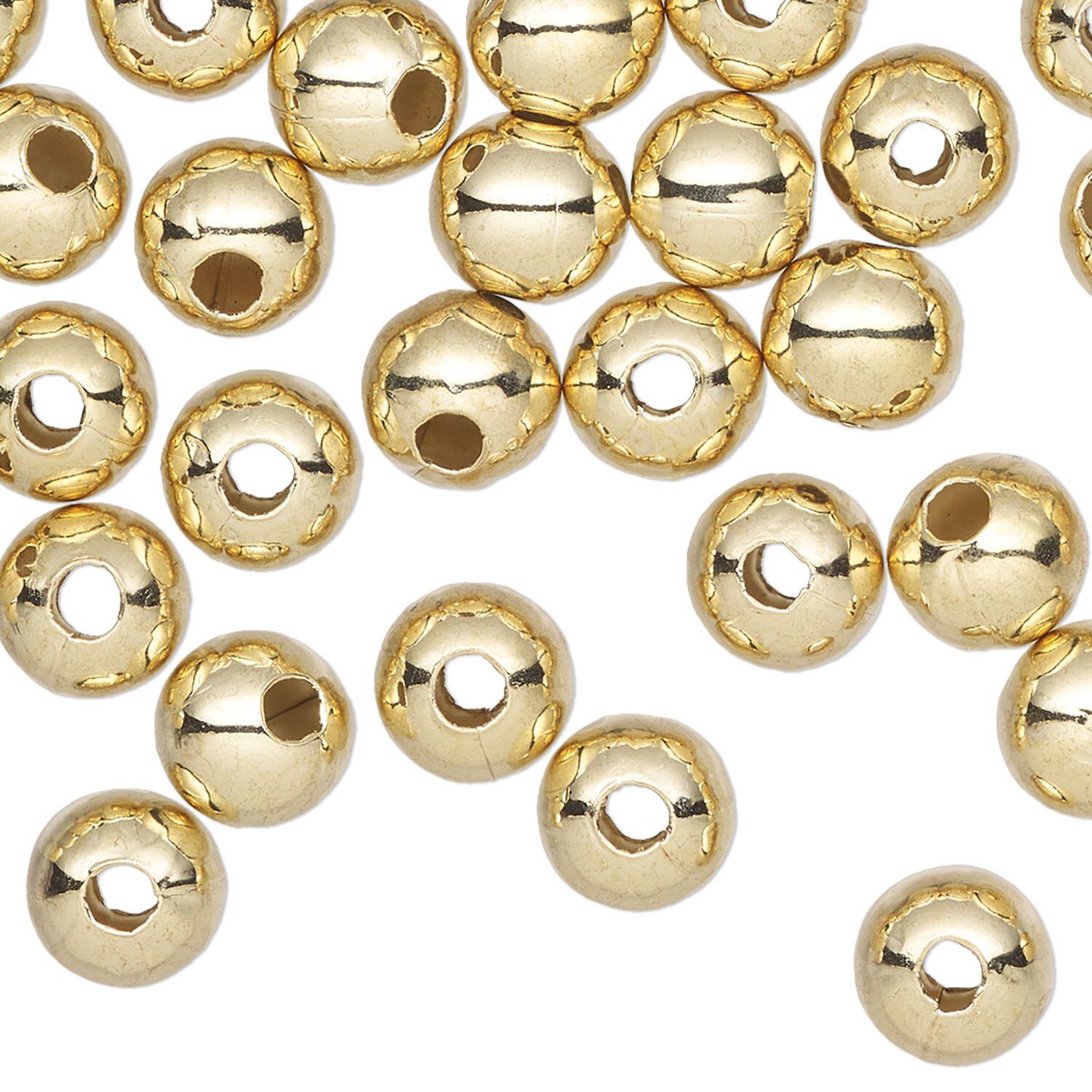 These economical round beads feature a steel base with a flash plating of gold color. These beads have a visible seam and will oxidize quickly creating a well-worn, rustic look.