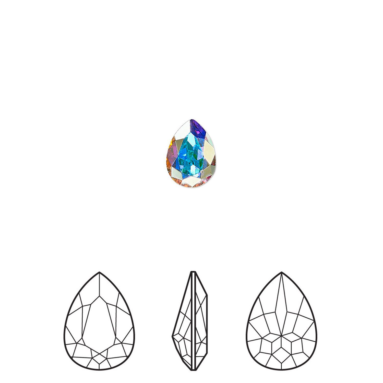 Swarovski's® AB effect, named for aurora borealis (the northern lights), is a term for crystal stones that have a highly iridescent surface. Created in 1955 in collaboration with Christian Dior, the effect is achieved by vapor blasting the facets of the lower part of the crystals with an invisible, micro-thin metal sheet.