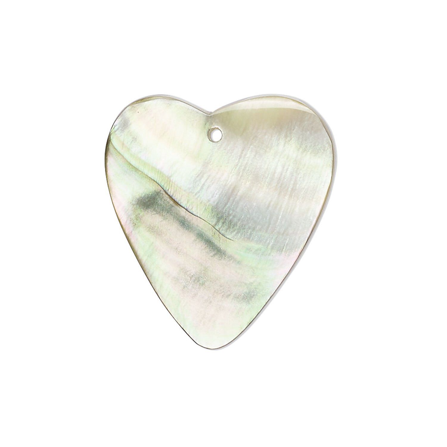 Drop, black lip shell (natural), 24x23mm hand-cut single-sided heart, Mohs hardness 3-1/2. Sold individually.