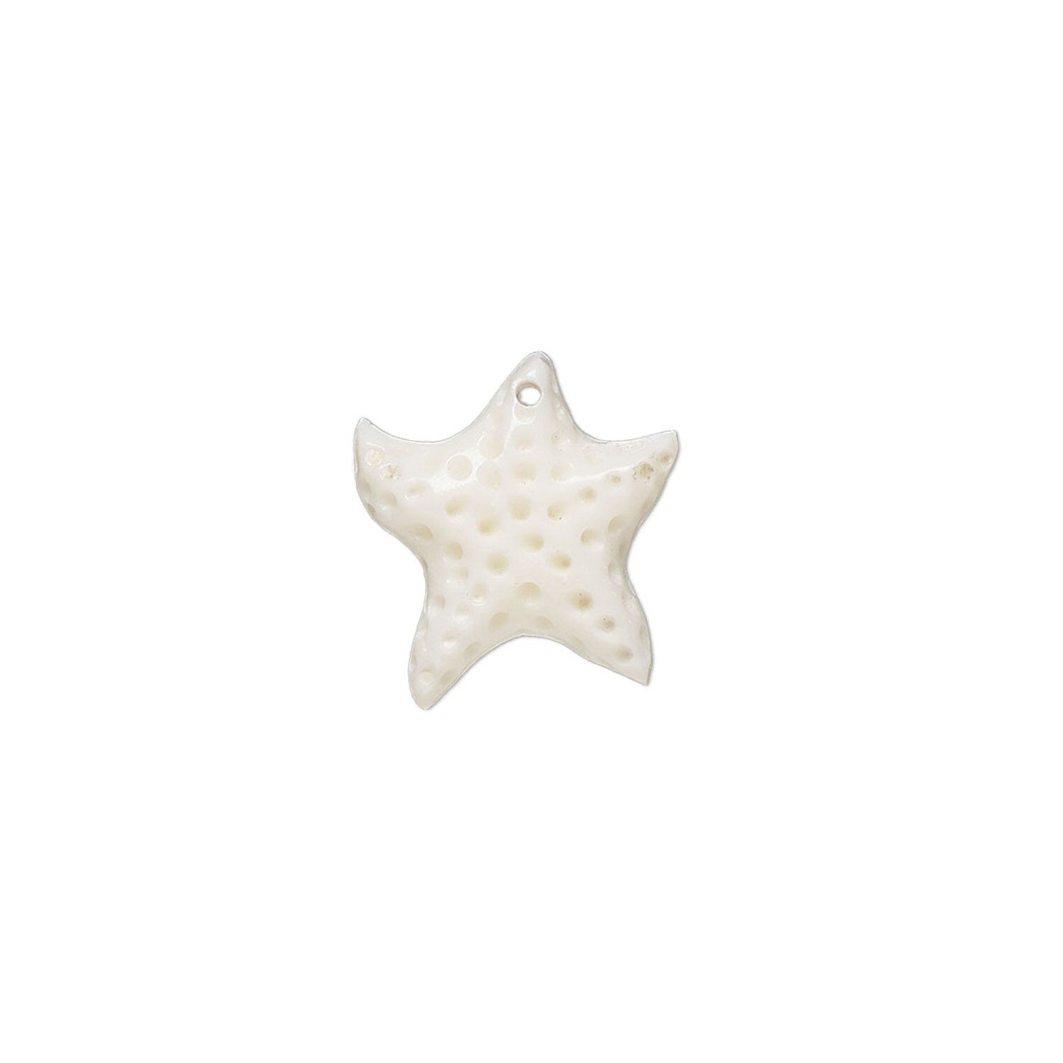Drop, bone (bleached), 14mm hand-cut single-sided carved starfish, Mohs hardness 2-1/2. Sold per pkg of 2.