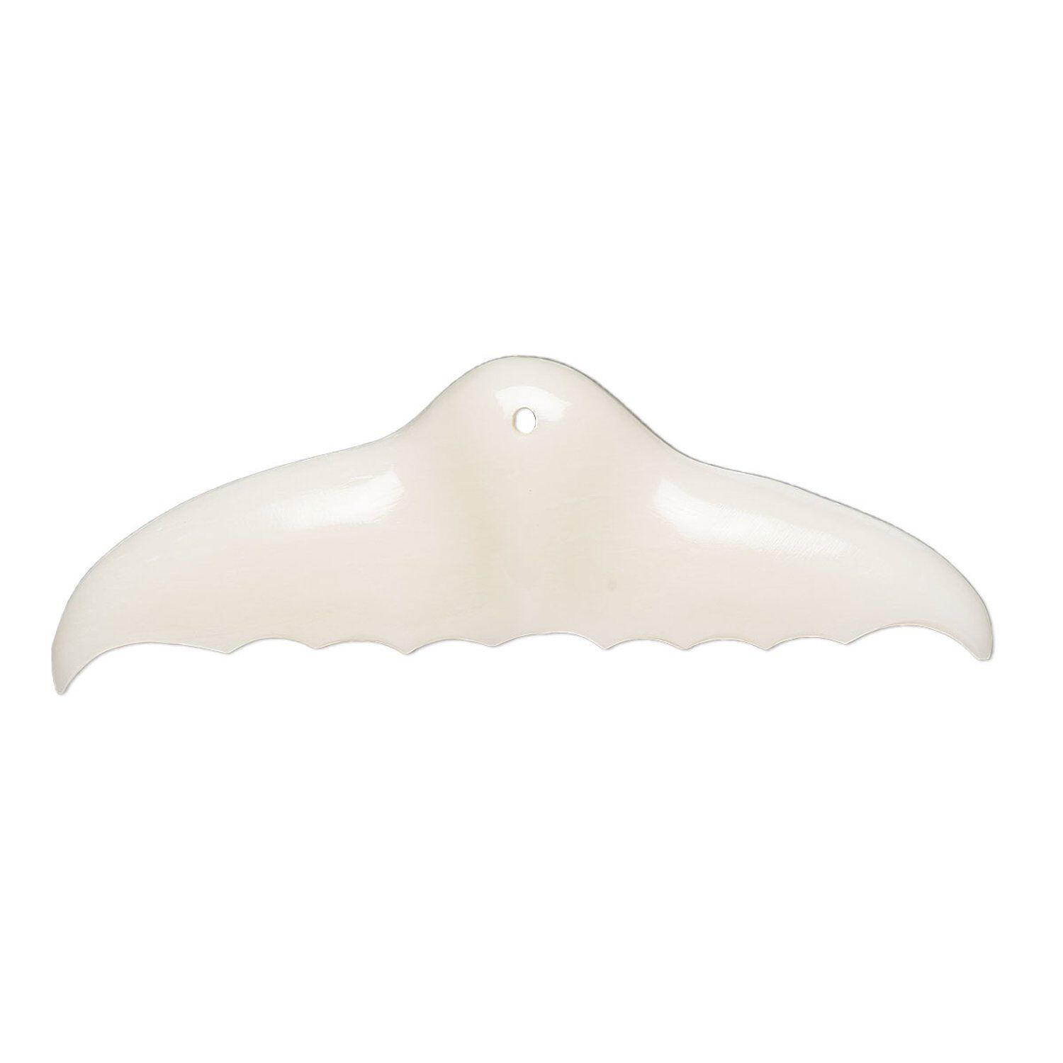Focal, bone (bleached), 47x17mm hand-cut single-sided carved whale tail, Mohs hardness 2-1/2. Sold individually.