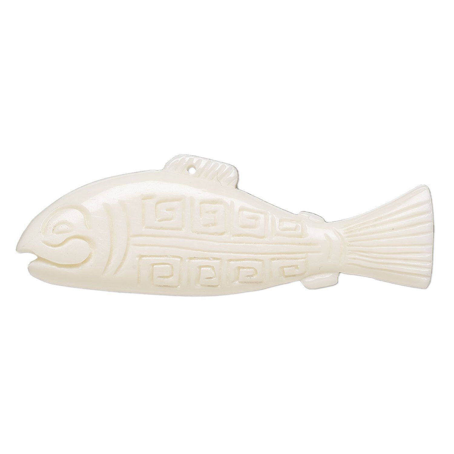 Bone 1pkg1, hand-cut top-drilled single-sided 3D carved salmon focal 58x22mm