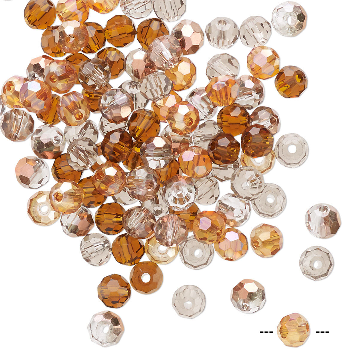 Bead mix 100pk 32 facets fall, Celestial Crystal® 4mm round