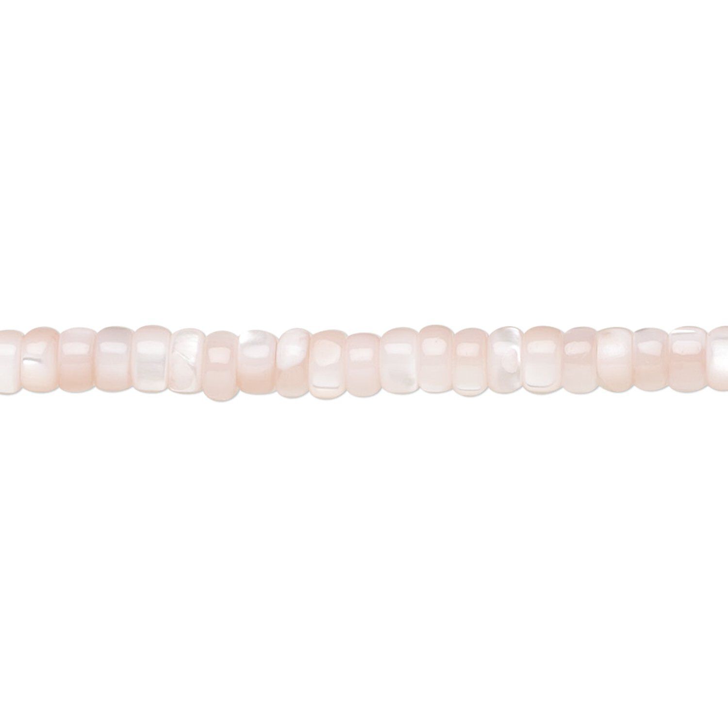 Mother-of-pearl shell is cut into a heishi shape and dyed a pretty pastel pink. Small heishi beads are a popular shape for bracelets, necklaces and earrings and make great spacers. Since these are a natural material, colors, shapes and sizes may vary in each lot.