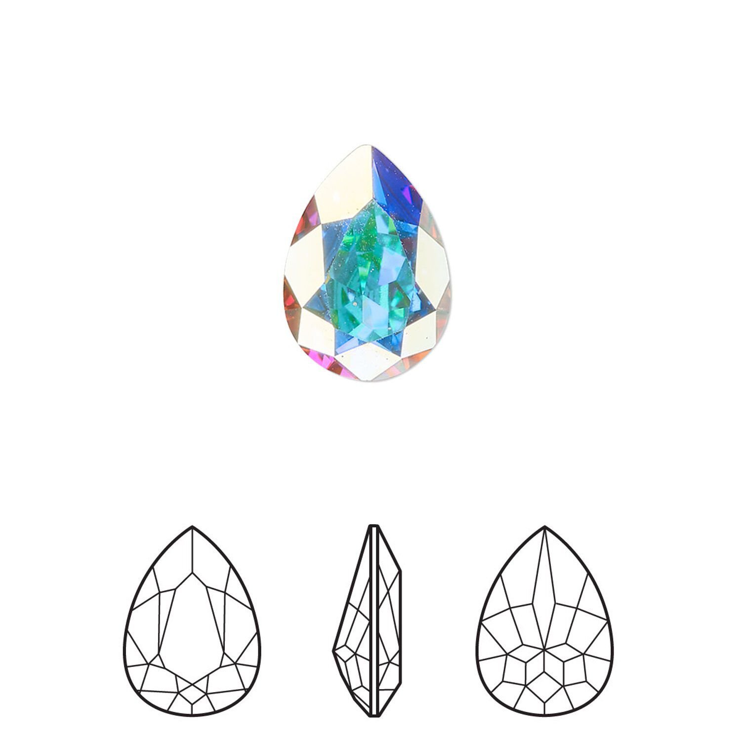 Swarovski's® AB effect, named for aurora borealis (the northern lights), is a term for crystal stones that have a highly iridescent surface. Created in 1955 in collaboration with Christian Dior, the effect is achieved by vapor blasting the facets of the lower part of the crystals with an invisible, micro-thin metal sheet.