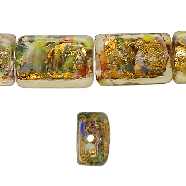 Bead, lampworked glass, gold with gold-colored foil, 18x12mm rectangle. Sold per pkg of 10.